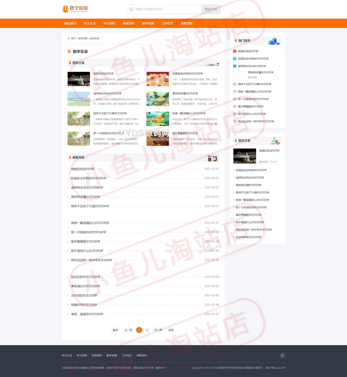 YM138-PHP教学资源发布网站源码 各类文章教材资料分享网站自适应手机端