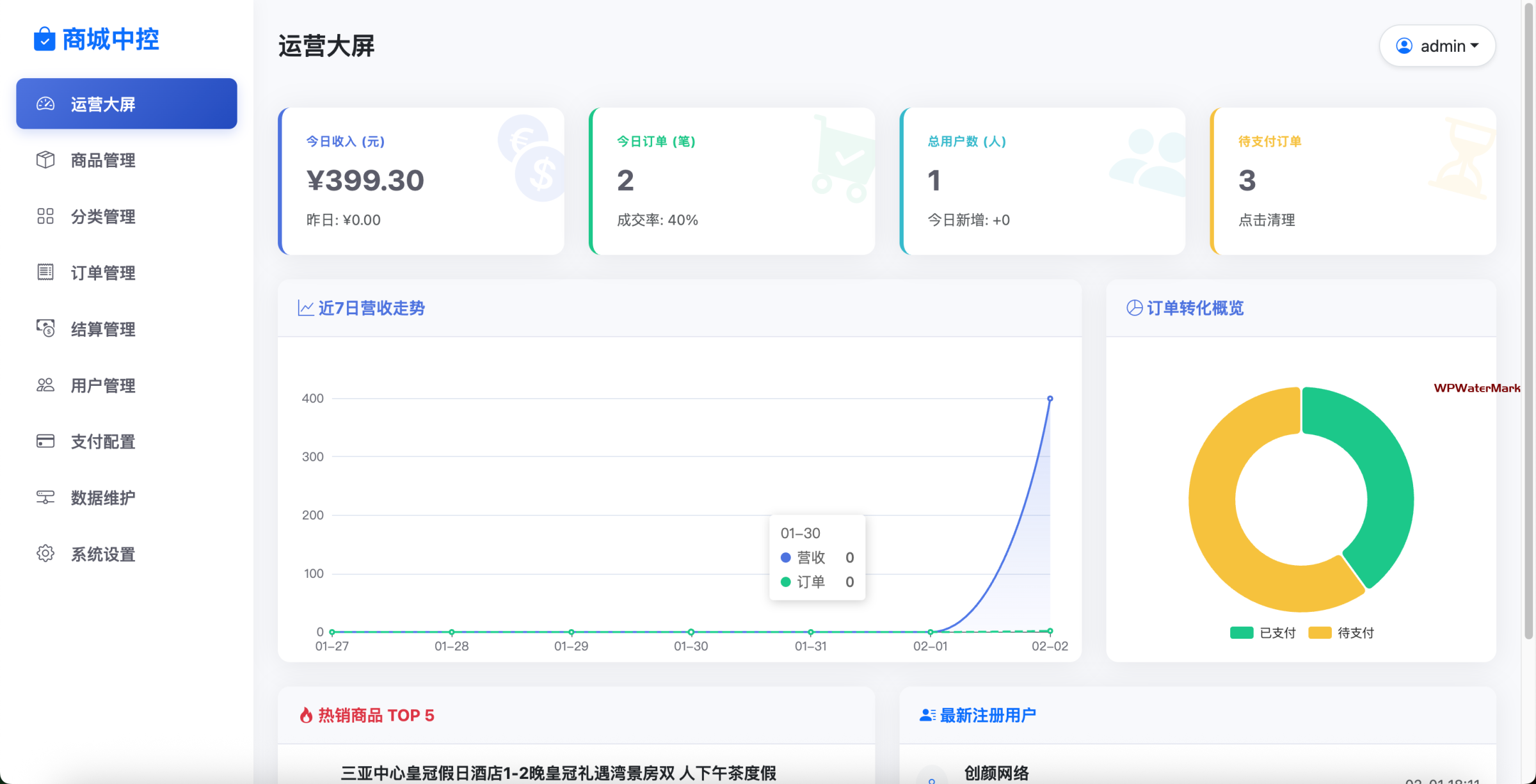 6.后台运营大屏,可清晰了解网站营收