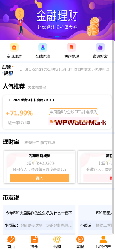 YM1454-带余额宝BTC理财/比特币合约理财/BTC contract/K线完整/内置客服系统/超完美/带搭建教程