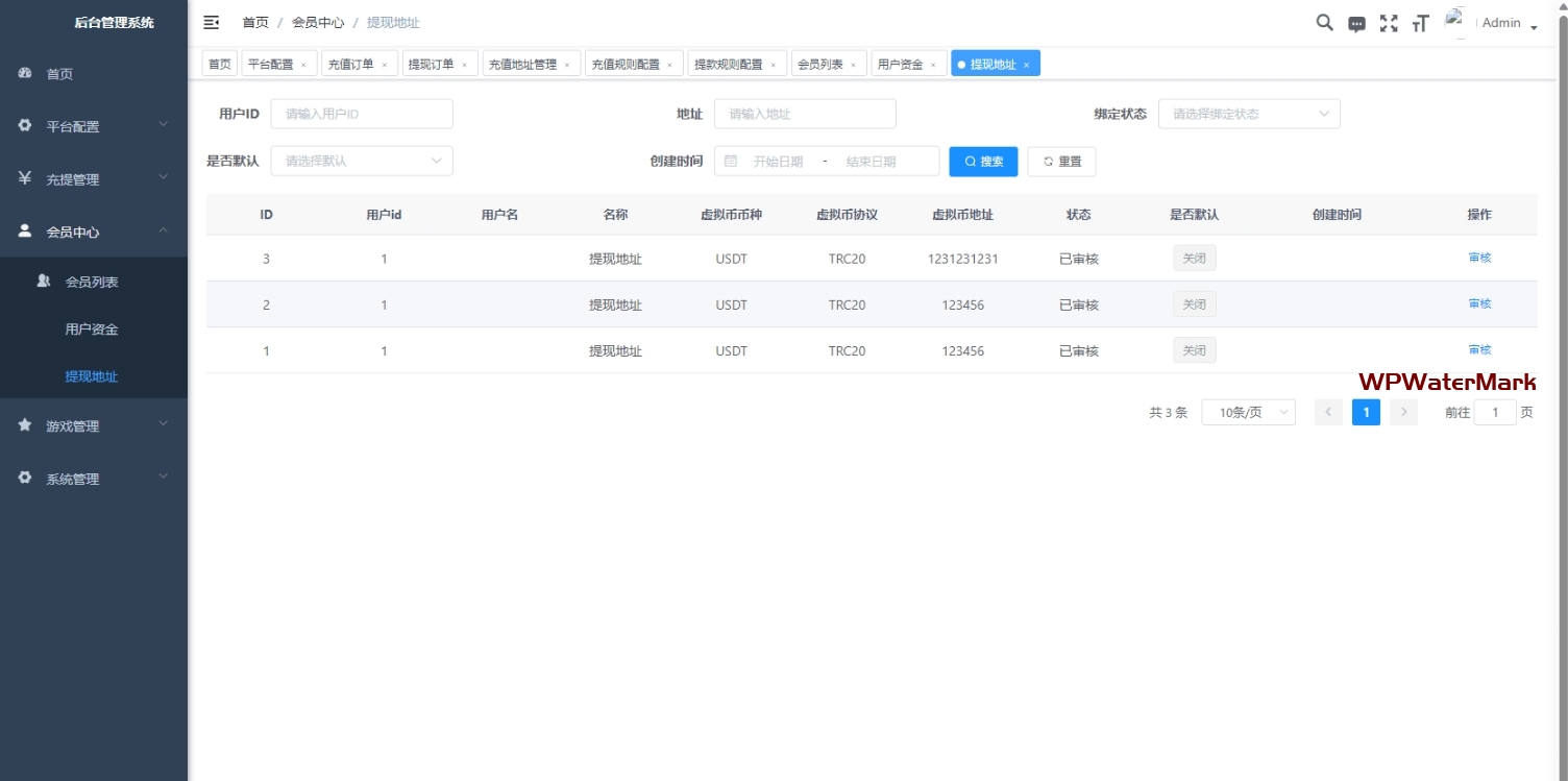 用户提现地址审核√