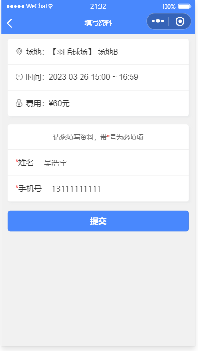 面向各类公共体育场所,校园对外开放体育设施,社区健身设施等,提供场所管理、场所统计、场所可预订时段与价格管理,费用计算、扣费记录、预订登记(支持连选多个时段),用户可以实时查看自己的费用余额,费用消耗情况,费用使用记录。后台也可以随时增减用户的账户金额。 本系统前后端完整,包括最新通知,场地预约,单选或者多选预订时段,后台管理,用户管理,待注册用户录入,用户金额数后台增减,预订名单管理,预订记录管理与导出,我的预订,历史浏览,我的收藏等模块,采用腾讯提供的小程序云开发解决方案,无须服务器和域名。