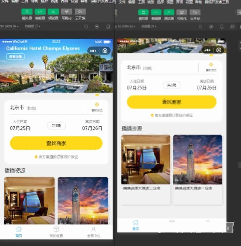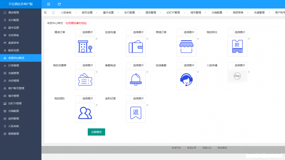 酒店多商户小程序是基于框架应用模块应用,需要微擎框架基础上使用,总体体验了一下功能还是强大,非常酒店及民宿类小程序搭建。小程序端支持多店版支持平台入驻。手边酒店多商户版只有模块版,无版本,该版本核心是全开源,支持多商户入驻,同时修复了下新的用户方式,开发工具基础库建议选择2.27.3,系统支持无限多开小程序。后台支持二级分销、会员等级、酒店点餐、首页DIY装修、订单邮件消息几种方式提醒、营业汇总、文章营销,基本上能这行业的需求了,小程序端用户也是采用新接口,可随时同步使用新版本。