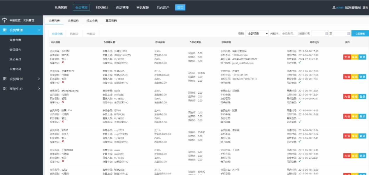 admin APP源码 分销商城 投资理财 2026-01-23 YM634-PHP企业会员推广,报单,分销,注册管理系统源码下载 企业3级推广报单分销源码下载会员注册管理系统。 支持多级,带商城。手机自动适配。 可自定义添加会员级别、奖励、权限;后台可手动添加报单;商品购买。 已补安装说明,安装简单 暂无优惠当前隐藏内容需要支付1500积分已有0人支付 支付查看 RIPRO主题是一个优秀的主题,极致后台体验,无插件,集成会员系统专业开发 » YM634-PHP企业会员推广,报单,分销,注册管理系统源码下载