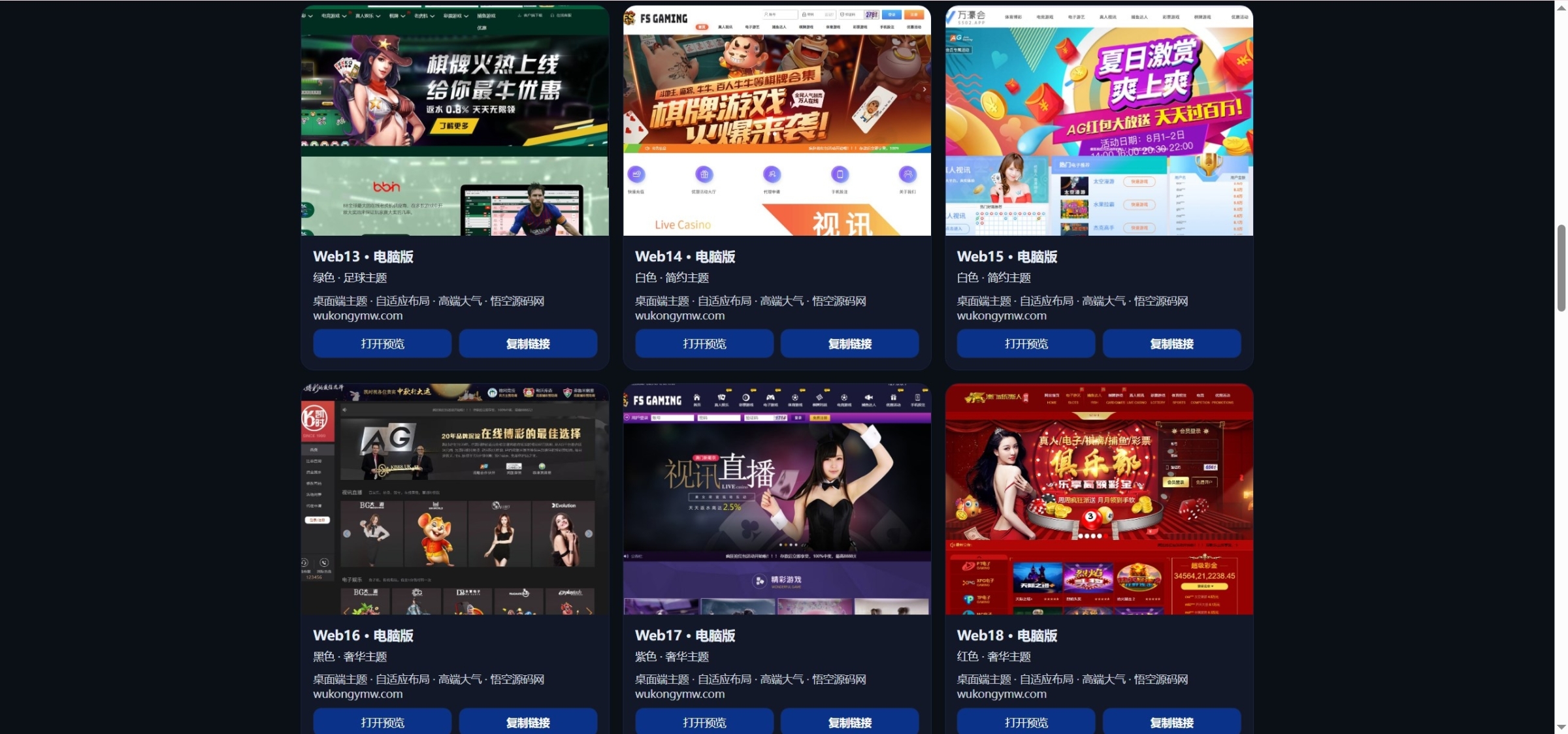 游戏现在集成了100多家,PC端模版一共有19个,手机端模版有12个(看的演示站只开放了这些,实际以搭建后的为准)