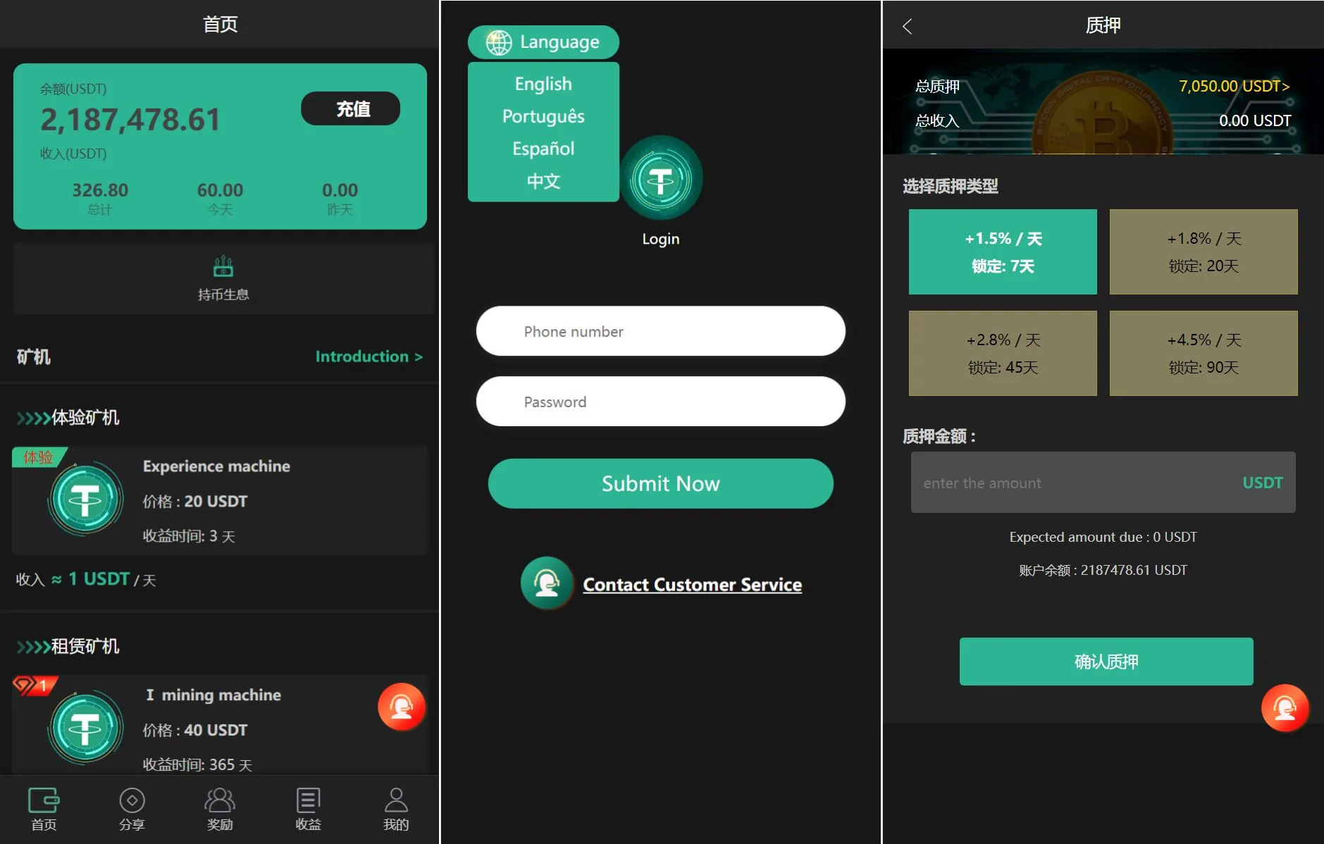 admin APP源码 区块链-虚拟币-交易所 投资理财 2026-02-06 YM865-2026年php多语言usdt矿机usdt质押生息拉新任务系统平台h5源码 多种语言:英文、西班牙、葡萄牙、中文 系统附带拉新奖励任务,完成团队任务即可获得usdt奖励 带usdt质押生息功能,后台可设置时间跟奖励 暂无优惠当前隐藏内容需要支付3000积分已有0人支付 支付查看 RIPRO主题是一个优秀的主题,极致后台体验,无插件,集成会员系统专业开发 » YM865-2026年php多语言usdt矿机usdt质押生息拉新任务系统平台h5源码
