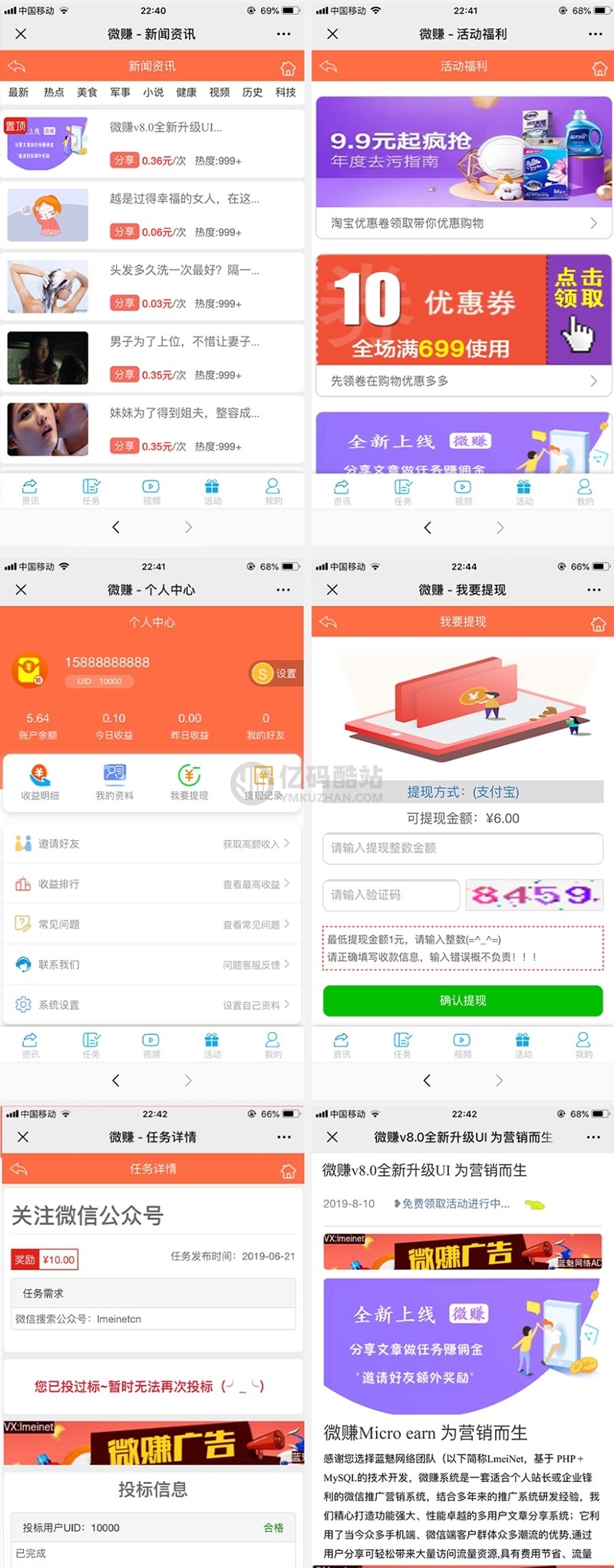 YM910-全新UI微信任务微赚系统,文章分享转发,威客任务,小说广告联盟赚钱系统微信朋友圈引流裂变