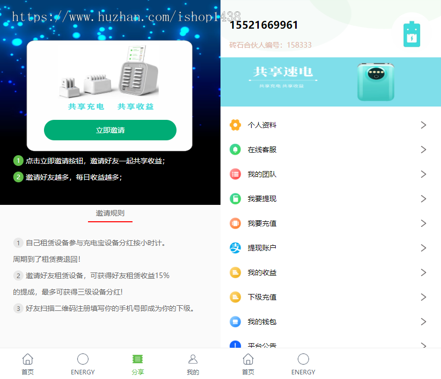 2、邀请好友租赁设备,可获得0.5元/天分红,
