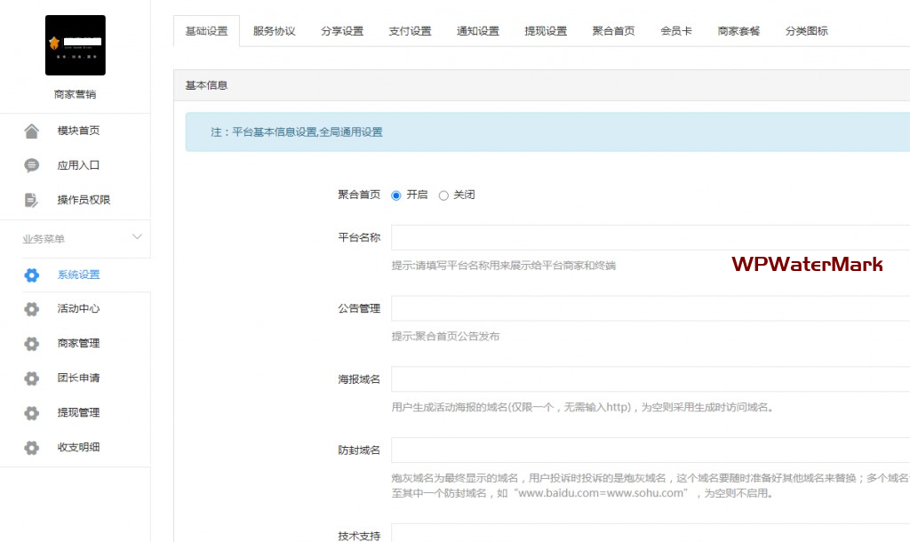 1.海报管理/红包功能/核销管理/会员功能/商家管理/提现功能等等;
