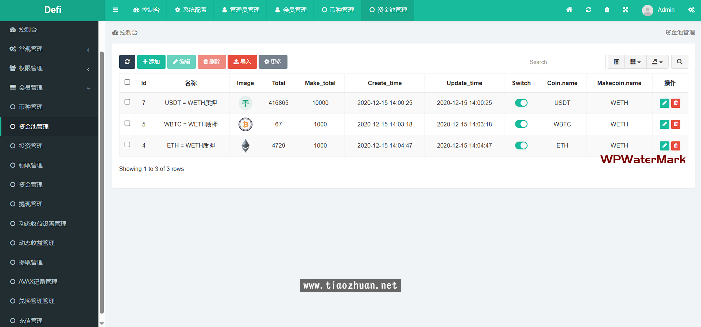 后台地址:你的域名/defi 后台账号:admin 密码:123456