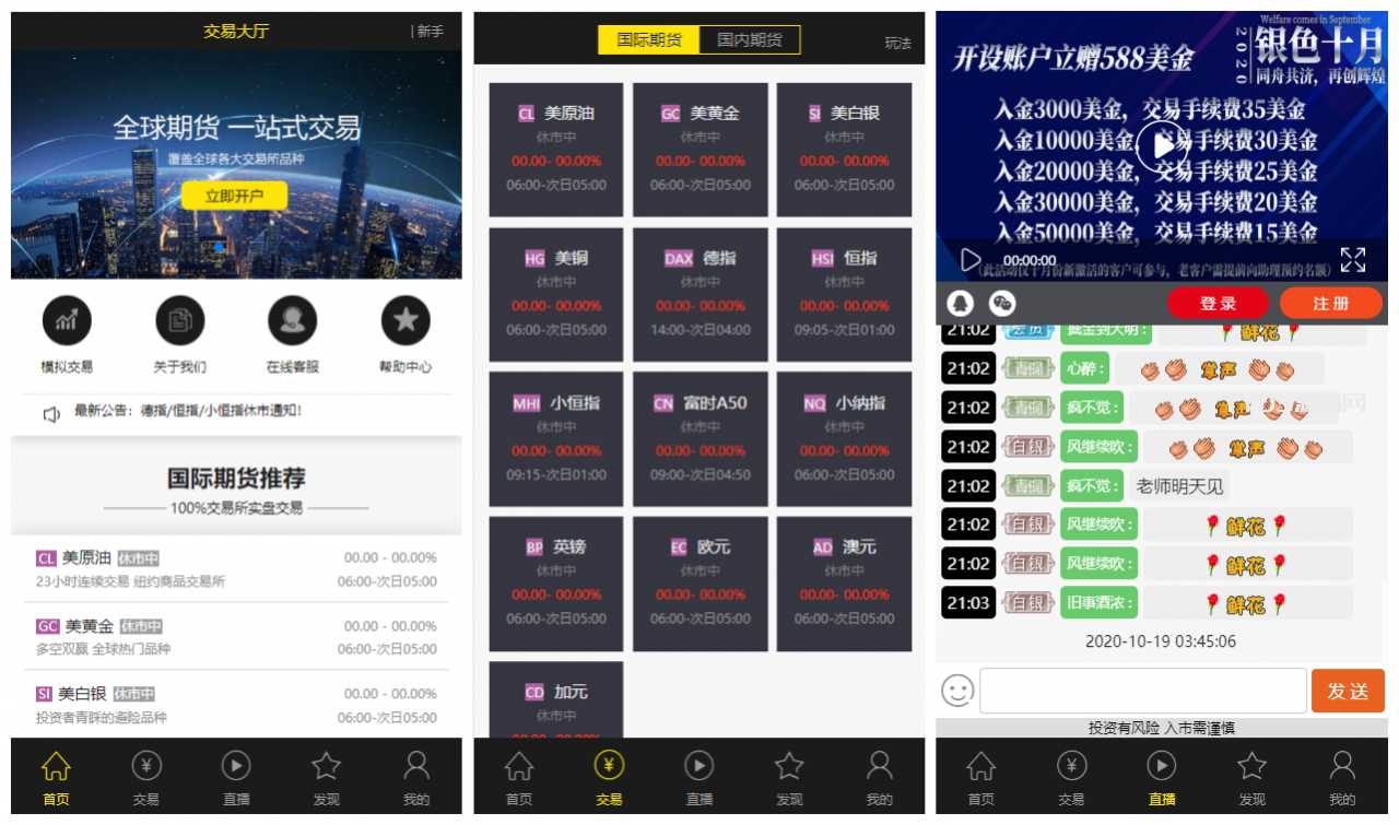 yii高端系列微盘点位盘PC+手机+国内外期货盘+带直播页面+资讯独立页面+完整数据+教程